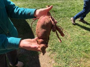 Freshly dug and washed peony clump awaiting final trimming and division.